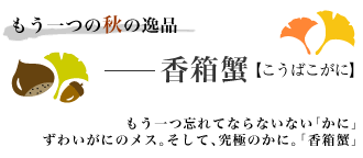 もう一つ忘れてはいけないのが「香箱蟹」です。地方によって色々呼び名が変わりますが、ずわい蟹のメスです。11月6日の解禁日は同じですが、「ずわい蟹」が3月20日。